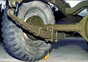 전차를 포함한 군용 기갑전투차량은 특화된 현가장치를 필요로 한다. 기갑 전투 차량은 47톤 이상의 무게가 나갈수도 있고 험준하거나 무른 지형에서도 가능한한 빠르게 움직여야 한다. 현가장치를 구성하는 부품들은 지뢰나 대전차무기에도 견뎌야 한다. 트랙으로 된 기갑 전투차량은 한 쪽 면에 최대 9개의 로드휠을 가지기도 한다