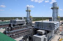 가스 터빈은 공기를 압축하여 터빈을 돌리기 위해 사용한다. 그것은 본질적으로 출력을 샤프트로 보내는 제트 엔진이다. 터빈에는 3가지 과정이 있다. 1) 공기는 압축기를 통해 흡입되며, 압축되면서 온도가 올라간다. 2) 연료가 연소기에 첨가된다. 3) 뜨거운 공기는 압축기에 연결된 샤프트를 회전시키는 터빈 블레이드 통해 배출된다. 가스 터빈은 원칙적으로 증기 터빈과 유사한 회전 기계이며 3개의 주요 구성 요소로 이루어져 있다. 이것은 압축기, 연소실 및 터빈을 포함한다. 공기는 압축기에서 압축된후 연료를 태우면서 가열된다. 가열된 공기 및 연소 생성물은 터빈 내부에서 팽창하여 작업 결과물을 생성한다. 작업량의 약 3분의 2가 압축기를 구동한다. 나머지 (약 3분의 1)는 유용한 작업 출력으로서 이용할 수 있다. 가스 터빈은 가장 효율적인 내연 기관이다. 제너럴 일렉트릭 사의 7HA 및 9HA 복합 사이클 발전소의 효율은 61% 이상이다.